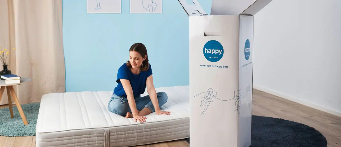 Per molte decisioni, ha senso dormirci sopra una notte. Per il test dei materassi, ne occorrono persino di più. Solo allora saprai se è davvero adatto a te. Dovresti concederti sei settimane per abituarti. Perciò è fondamentale assicurarsi di poter provare il materasso dormendoci sopra ed eventualmente poterlo restituire. Questa opzione è disponibile presso gli offerenti seri. Naturalmente anche da noi. Addirittura per 100 notti! In fondo, il nostro nome dice già tutto: vogliamo che tu sia “happy” del tuo nuovo materasso.