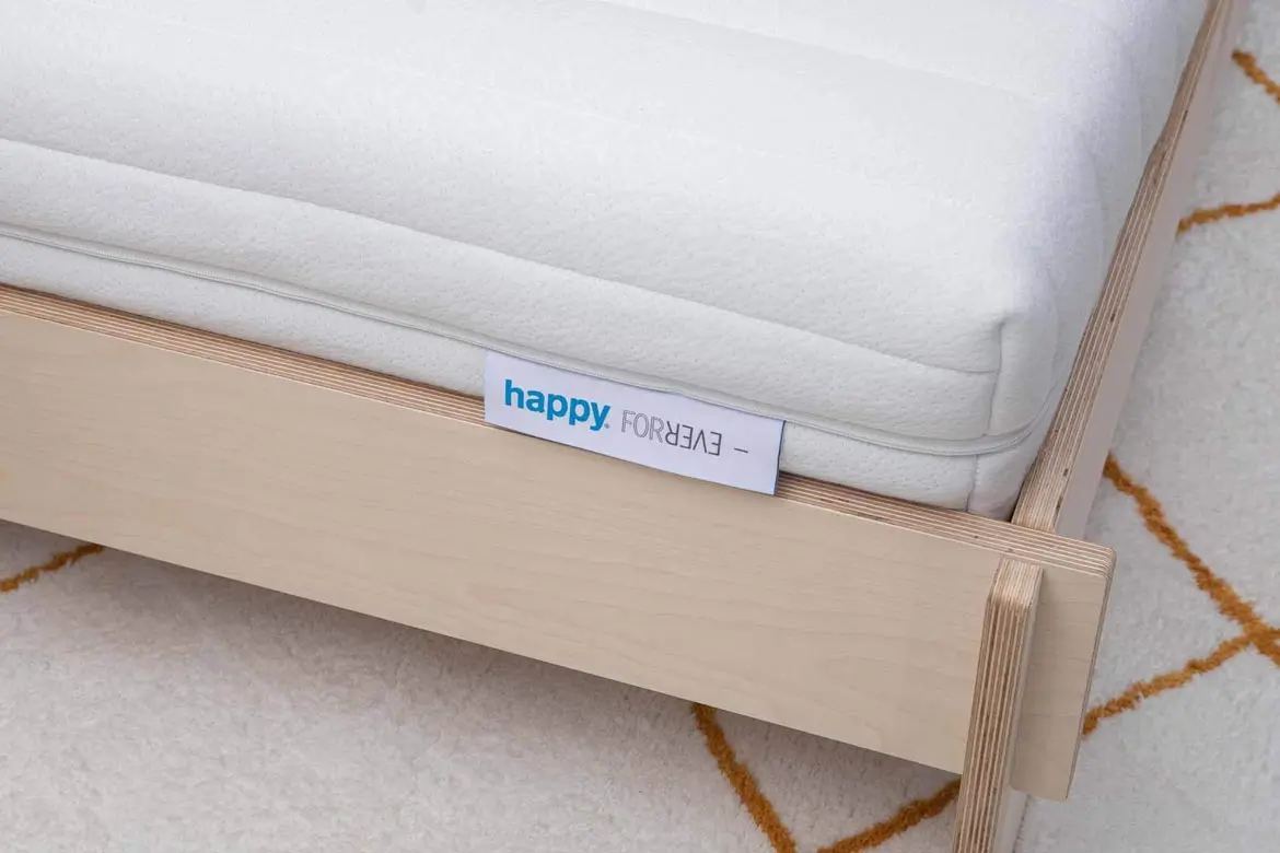 Se puoi legger “happy FOREVER –” sull’etichetta, vuol dire che la parte più morbida del materasso è quella sopra.